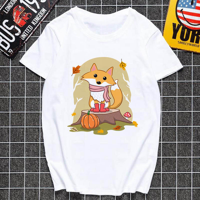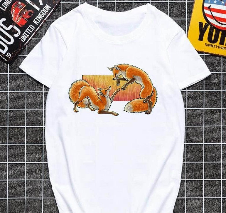 Cute fox printed T shirt Women Harajuku Tshirt Thin section